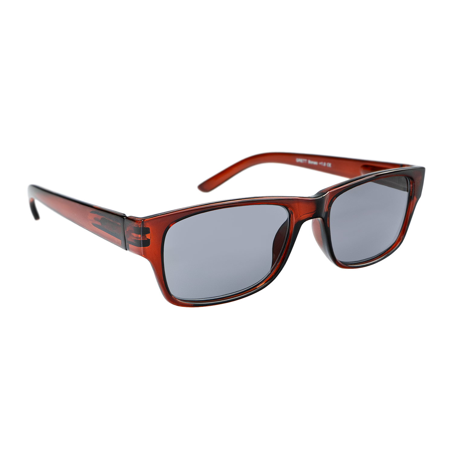 Bonao - Bruna läsglasögon med solskydd i en tidlös, rektangulär design.