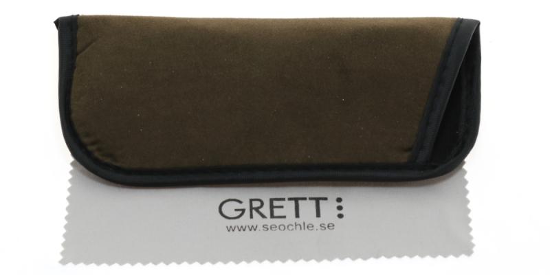 Calais levereras med mjukt brunt fodral och en putsduk.
