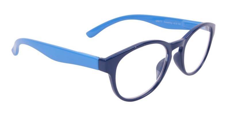 Tvåfärgade runda läsglasögon i mörkblått och klarblått. Fri frakt!