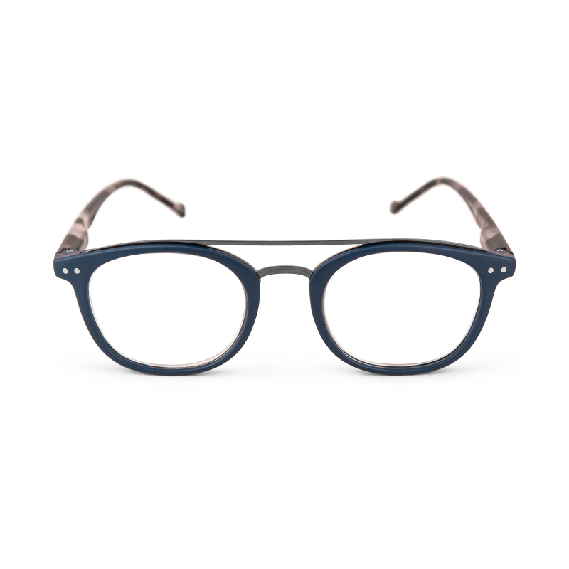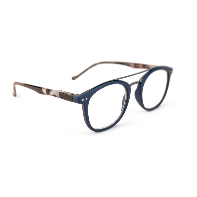 Dayton - Blåa läsglasögon med sköldpaddsmönstrade skalmar (Minusstyrkor)