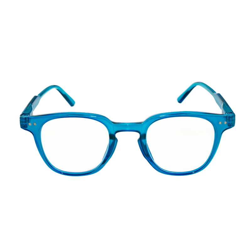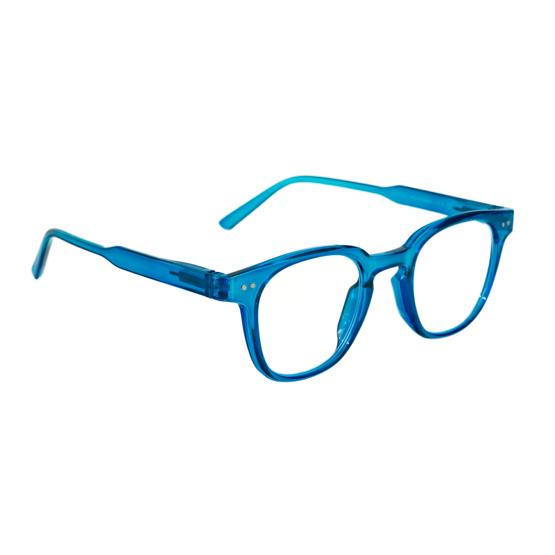 Snygg plastbåge i blå lagun med fjäderskalmar. Manhattan levereras ej med fodral och putsduk.