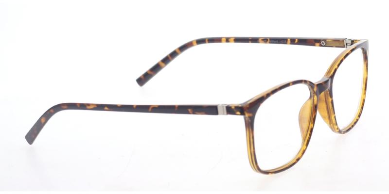 Sköldpaddsfärgade läsglasögon som är lätta och diskreta. Milford har fjäderskalmar. Glasögonen levereras med mjukt brunt fodral och en putsduk.