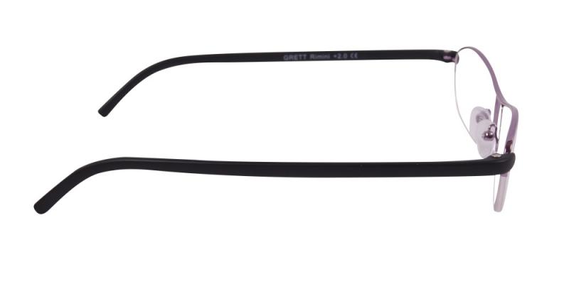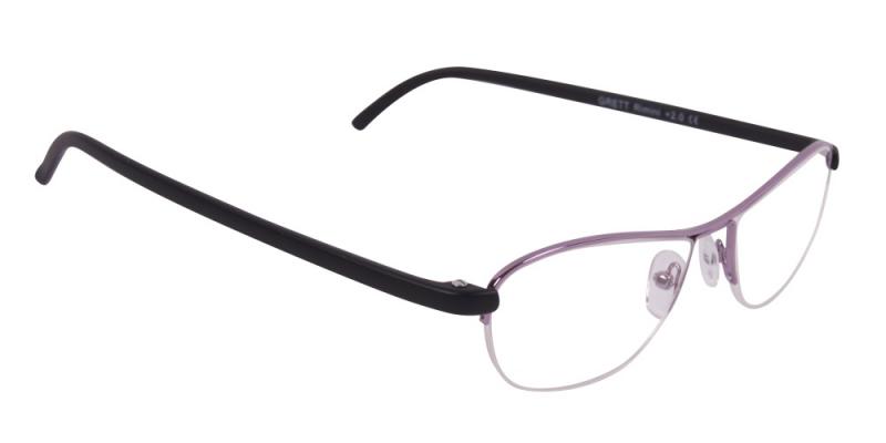 Lila, smäckra, stilrena och lätta metallbågar med svarta skalmar i plast. Linsstorlek = medel. Leveranstid = 1 - 3 vardagar.