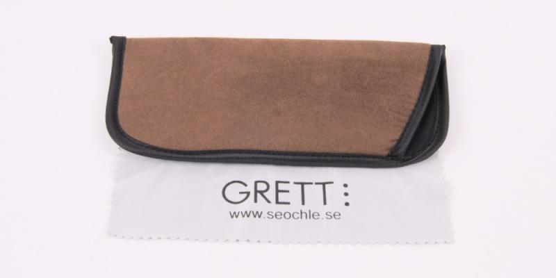 Stoke har randiga fjäderskalmar och levereras med ett mjukt brunt fodral och en putsduk.