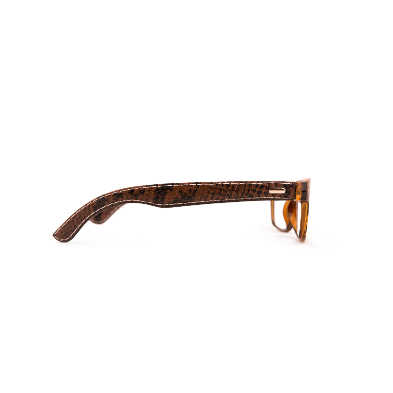 Sköldpaddsmönstrad brun modern båge med läderklädda skalmar.