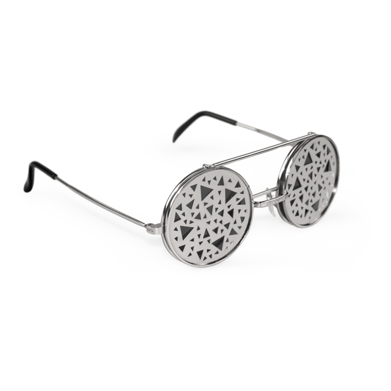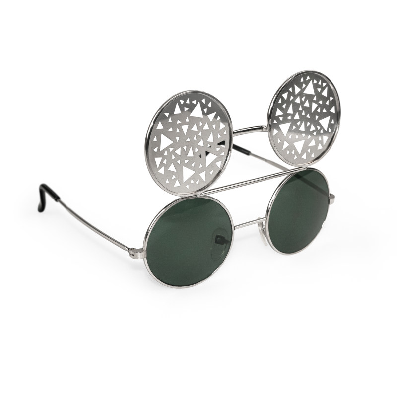 Ikoniska solglas i silver, med fräckt metall skydd.